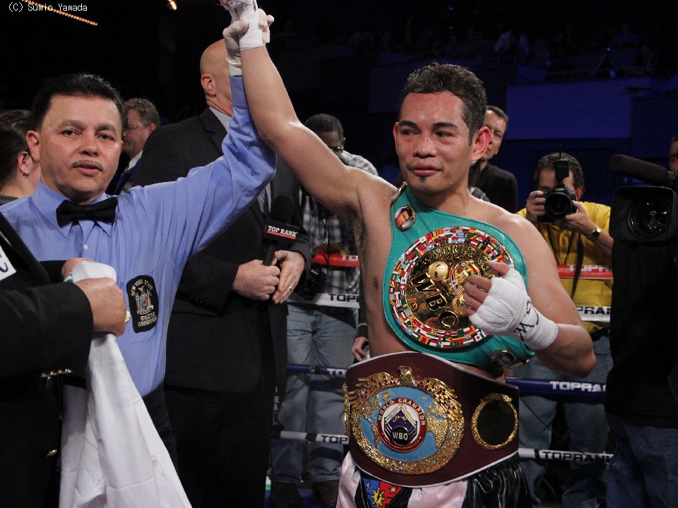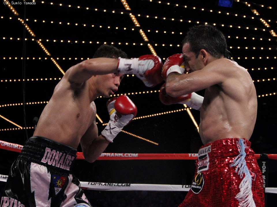 WBC&WBO世界バンタム級王者ノニト・ドネア(比/米)は22日(日本時間23日)、米国ニューヨークのマジソン・スクエア・ガーデン(MSG)ワミュー・シアターにWBO世界スーパーフライ級王者オマール・ナルバエス(亜)を迎え、統一王座の初防衛戦に臨んだ。