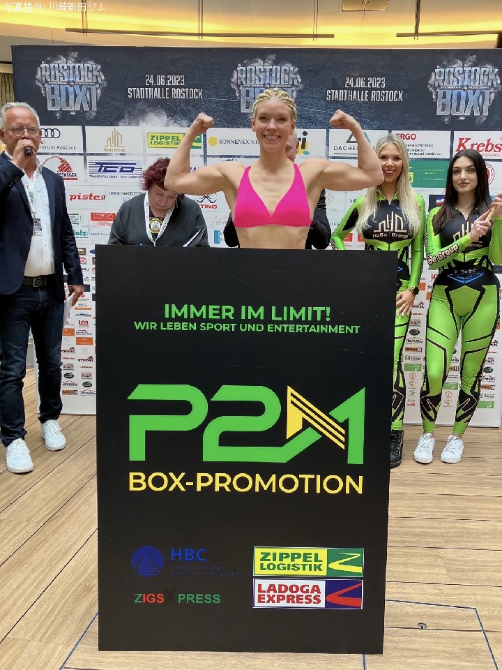 WBA(世界ボクシング協会)女子ゴールド・フェザー級王座決定戦の前日計量が、日本時間23日にドイツ・ロステックで行われ、WBA同級3位のニーナ・マインケ(30=ドイツ)と日本女子同級王者の三好喜美佳(39=川崎新田)が対峙した。
