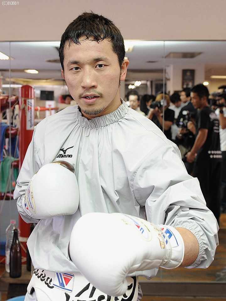 公開練習ではシャドーボクシングで汗を流し、リングを円く使う軽快なステップワークを駆使して縦横無尽に動き、攻撃面では右ジャブから切れ味鋭いワンツー・右フック・右ボディのコンビネーションを披露した。そして4ラウンドのスパーリングでは前東洋太平洋フェザー級王者ジョエル・アリビオ(比国)をパートナーに、素早い右ジャブでコントロールし、左ストレート・左アッパーをアリビオに浴びせ、左右ボディ・右ストレートの反撃にも巧みなブロックとスウェーでクリーンヒットを許さず、挑戦者陣営に順調な仕上が