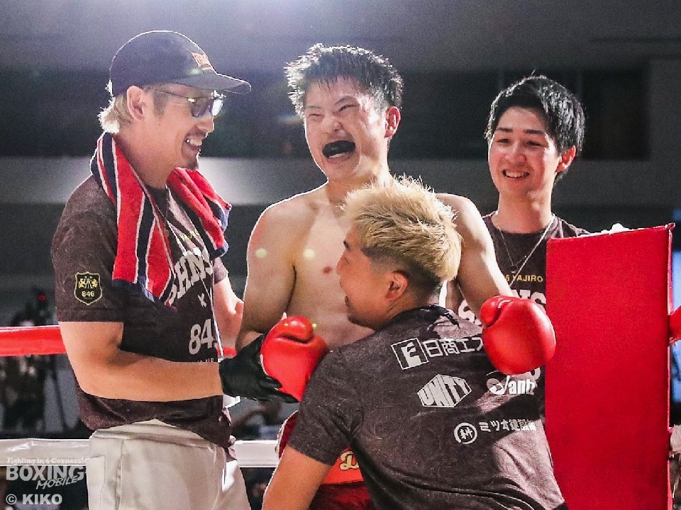 会心のKO勝ちを飾った眞木は「相手は身長が高くてアマチュア経験があるので、ボディから攻めていく作戦だった。上手くハマった。練習の成果を発揮することができた」と声を弾ませた。
