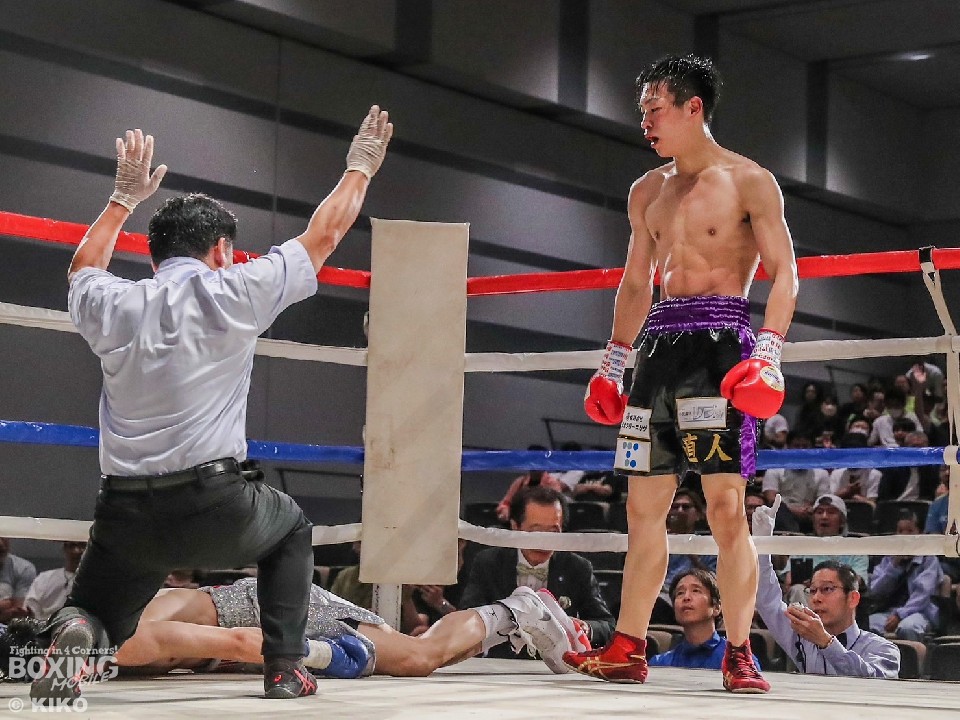 田甫は、スーパーバンタム級4回戦で、藤本結磨(18=尼崎亀谷)と対戦。開始から左フックでダウンを奪うと、上下の打ち分けから右ストレートでダウンを追加。最後は、右ストレートで藤本をキャンバスに沈めた。