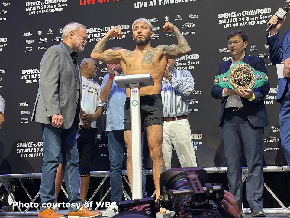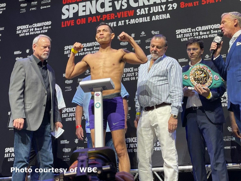 WBC世界バンタム級王者決定戦の公開前日計量が現地時間の28日、米国ラスベガスで行われ、チャンピオン返り咲きを目指すノニト・ドネア(40=比/米)と世界初挑戦のアレハンドロ・サンティアゴ・バリオス(27=メキシコ)が、ジミー・レノンJrにコールされた。