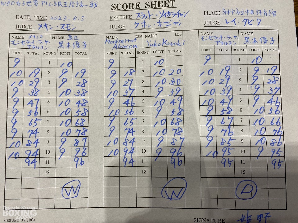 WBA(世界ボクシング協会)アトム級王者のモンセラット・アラルコン(29=メキシコ)とWBO(世界ボクシング機構)同級王者の黒木優子(32=真正)が5日、神戸市立中央体育館で開催された「第5回WHO'S NEXT DYNAMIC GLOVE on U-NEXT」で、2本のベルトを懸けて激突した。