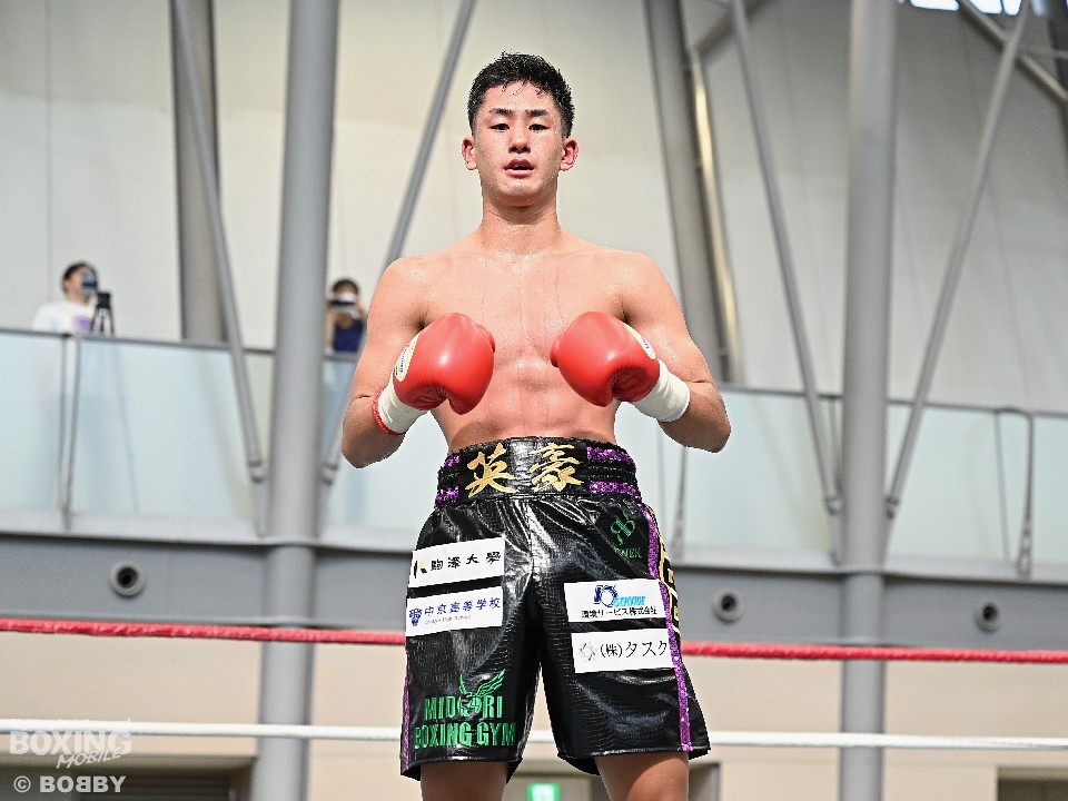緑ジムが期待を寄せる英豪(えい・ごう/22=緑)が20日、刈谷市あいおいホールで開催された「GREEN Dream vol.21」のメインイベントに出場。62.0kg契約6回戦で、浜崎隆広(37=仲里)を相手にデビュー戦に臨んだ。