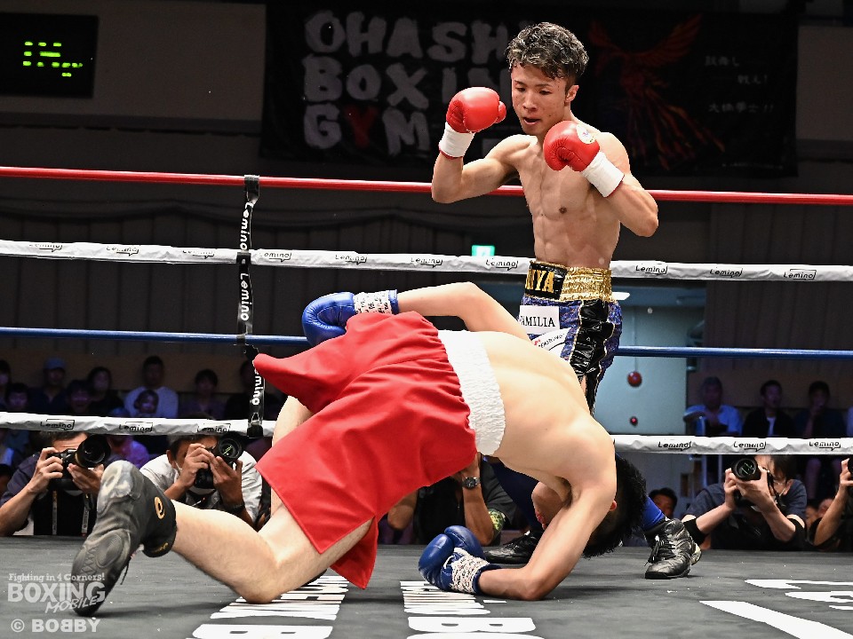 山口がジャブで顔を弾くと、返しのパンチにも冷静に対応。すると右カウンターで痛烈なダウンを演出。レフェリーは、ノーカウントで試合をストップした。