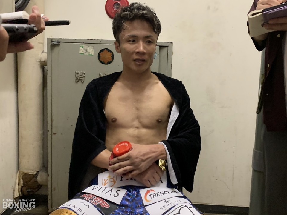 見事なKO勝ちを飾った山口は「(ダウンを奪ったパンチは)狙っていなかった。合わせられそうだったので、冷静に(右を)出した」とフィニッシュブローを振り返ると、「今年2月に右手を剥離骨折していて、右の練習はできていなかったが、尚弥に言われた通り、ジャブとワンツーだけを繰り返し練習してきた」と満面の笑みを浮かべた。