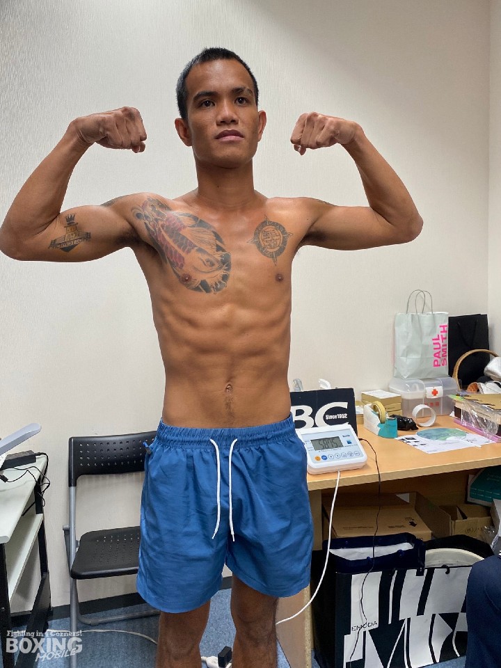 世界王座奪還を目指す尾川は、再起2戦目の計量を58.8kgでクリアすると「普段から、スーパーフェザー級リミットから5〜6kgに抑えている。日本タイトルマッチ(2015年)くらいからマッサージをしてもらっている人にも『今が一番状態がいい』と言ってもらっている」と、調整が上手く出来たことを報告した。「ここで被弾しているようでは、世界なんて無理。被弾せずに、しっかりと右を打ち込んで最終的には倒す」と気合を入れた。