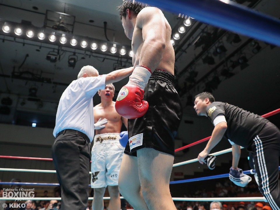 伊吹が距離を潰して打ち合いに持ち込むと、右フックでダウンを演出。再開後、パンチをまとめて仕留めにいくが、ここを踏ん張った赤井は、右アッパーをコツコツと当てて反撃した。2回、赤井はボディに細かくパンチを集めると左右フックを決めて攻勢。勝負はわからなくなってきた。3回、お互いに懸命にパンチを繰り出し一歩も引かず。しかし、赤井は右アッパー、左ボディでダメージを与えると、伊吹陣営が棄権を申し出た。打撃戦を制した赤井が逆転KO勝ちした。