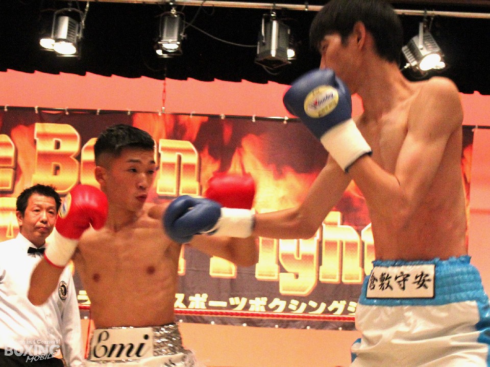 メインイベンターに抜擢された宮元が積極的な攻撃でペースを握るが、2回にサウスポー見尾の左ストレートを浴びてダウン。それでも気持ちを切らさず果敢に攻めて、ポイントを挽回。ワンツーで顔を弾き、攻勢を印象付けた。ダウンを喫した宮元だが、接戦を制した。