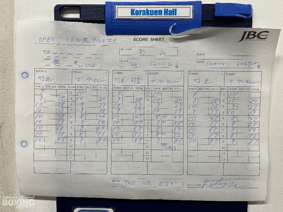 4ラウンド終了時の途中採点では、0-2とジャッジ2人がウーヒョンを支持したが、竹迫は「気にならなかった」。セコンドからの指示にも対応できたことに「試合中に修正できた」と冷静に戦っていた。