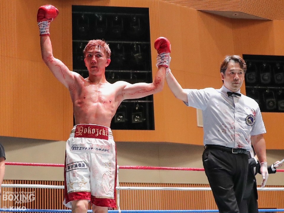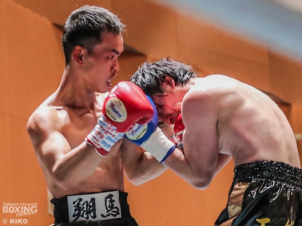 第4試合57.5kg契約4回戦では、西村翔馬(21=岐阜ヨコゼキ)と濱田広志(33=天熊丸木)が激突。初回から激しいパンチの応酬を見せる中、2回に濱田の攻撃を耐えた西村が右ストレートで相手の右目上を切り裂きTKO勝ちした。