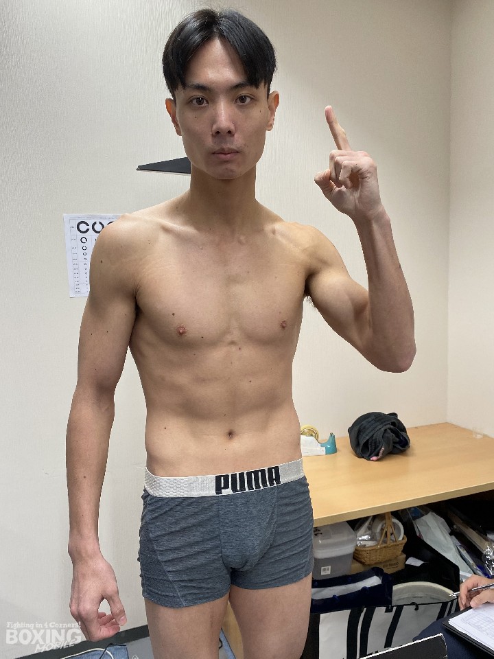 ウェルターリミットを200g下回る66.4kgでパスした永田は「疲労を溜めることなく、体重を落とすことができた。1週間前まで追い込んだ練習ができた」と仕上がりの良さを強調すると、「スーパーライト級のポテンシャルで、どこまでウェルター級で戦えるか。リスクのある試合」と位置づけを示した。