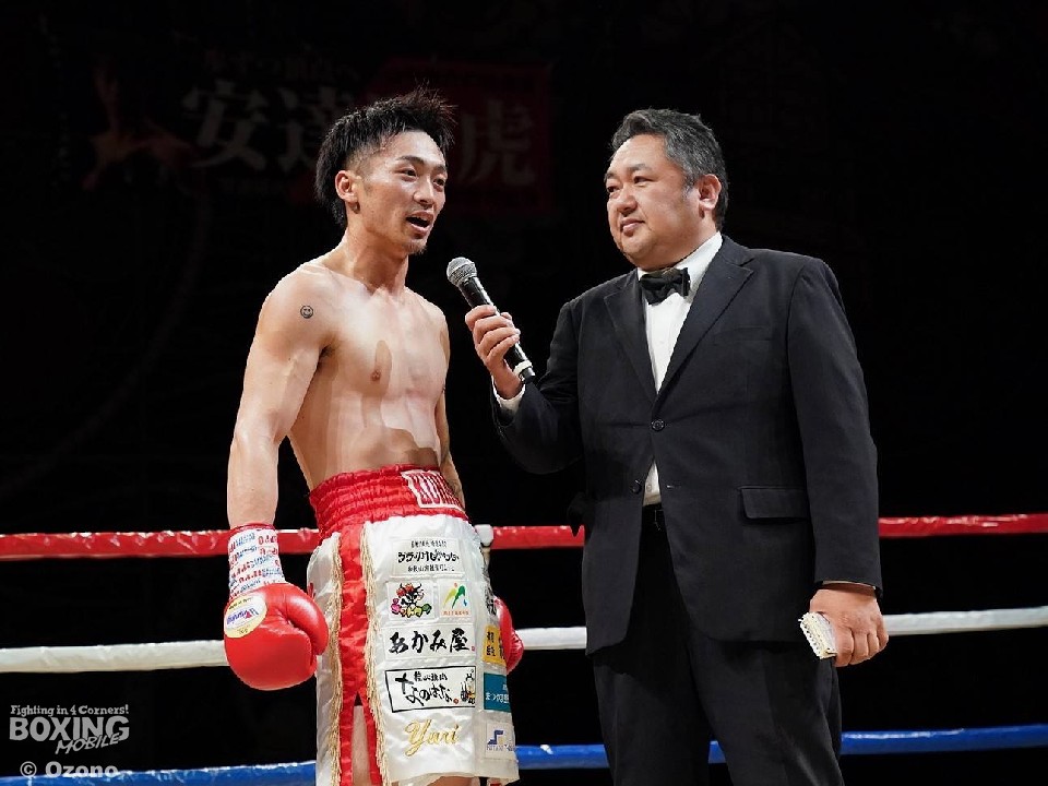 横浜の大橋ジムに籍を置く滋賀県出身の安達にとって、京都のリングは凱旋試合。試合後、リング上でマイクを向けられると「関西いいですね。応援が熱いっす」とファンの歓声に感謝の気持ちを伝えた。対戦相手に関しては「意外とパンチがあったので、冷静になった。勝ててよかったです。ホッとしてます」と、1年半ぶりの再起成功に笑顔が溢れた。