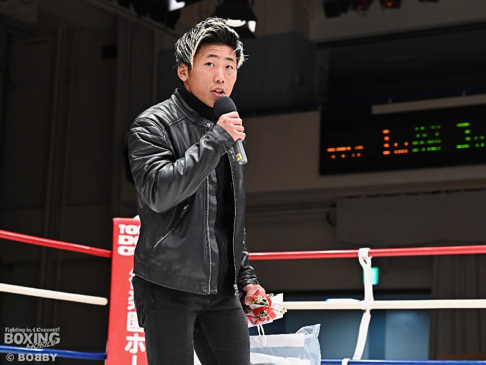 齋藤は「先日の試合を評価していただいた。次戦は決まっていないが、スーパーフェザー級で頭角を現すよう、これからも精進していきたい」と飛躍を誓った。