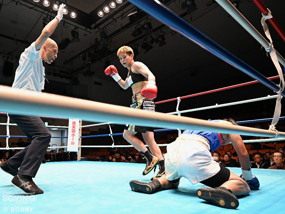 元女子世界2階級制覇王者の天海ツナミ(39=山木)が4日、後楽園ホールで開催された「OVER HEAT BOXERS NIGHT.107」のセミファイナルに出場。女子51.0kg契約8回戦で、ワッサナ・カムディー(35=タイ)と対戦した。
