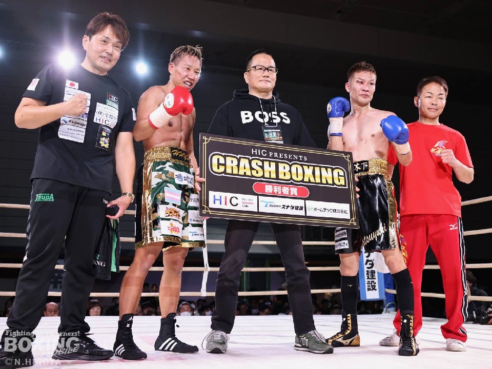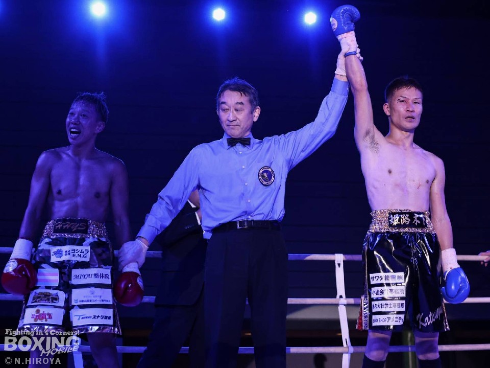 真道がコールされると、会場からは大声援が沸き起こった。真道がジャブから丁寧に組み立てると、ワンツー左フックをヒット。2回、石橋は左フックで膝を揺らし反撃。しかし、偶然のバッティングで、石橋は左まぶたをカットした。その後は激しい打撃戦に突入。真道が左フックをねじ込めば、石橋も回転力を活かした連打で譲らず。「パパ―!がんばれ!」の声が聞こえる中、始まった3回。真道はカウンターの左フックを決めるが、石橋はプレスをかけて攻め立てると、左フックでダウンを演出。ラスト20秒を切ると激しく打ち合い会場を沸かせた。ダウンを奪った石橋が勝利した。ダウンを奪われて男子選手としては、黒星発進となった真道ゴーだが、男子選手としても十分過ぎる評価を得た。