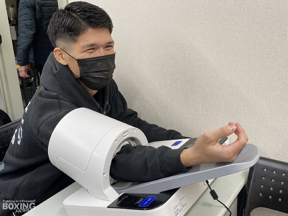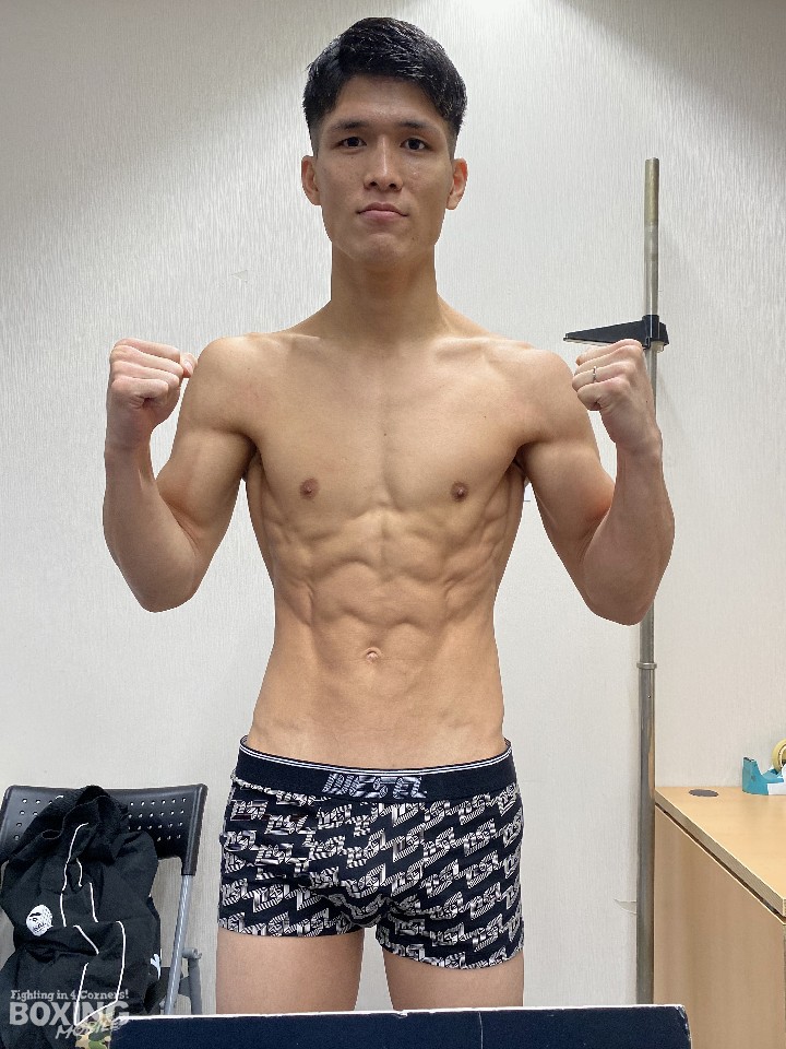 7連勝中の蝟xは、100gアンダーの61.1kgで秤を降りた。A級初戦で前チャンピオンと対戦する蝟xは「強い相手なので、最初は実力が及ばないのではないか」とオファーを迷ったというが、「ジムからこうしてチャンスをもらった。敬意を持って勝ちにいく」と腹を括った。