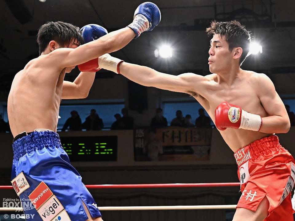 敢闘賞には、スーパーフェザー級の下村佳輝(24=三迫)が選ばれた。小松直人(19=森岡)と拳を交えた下村は、初回からプレスをかけて、左ボディ、ワンツーを好打。2回、下村はワンツーでダウンを演出。立ち上がったサウスポー小松は、左ショートでグラつかせて反撃。その後は、壮絶な打撃戦で会場を盛り上げた。勝負が決まったのは4回。下村は右ストレートでグラつかせると、パンチをまとめて倒してフィニッシュした。
