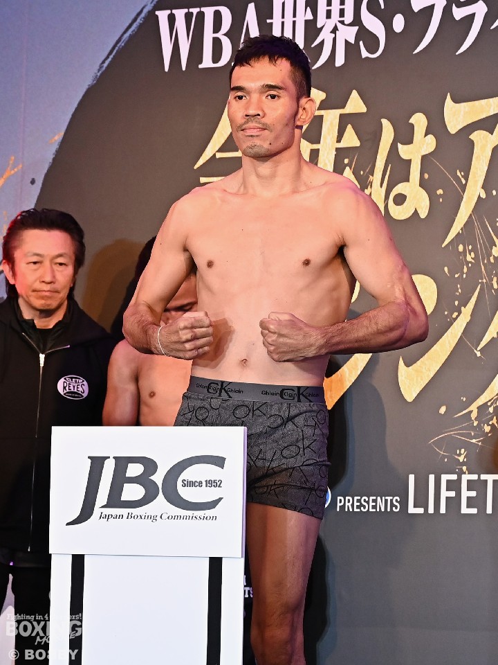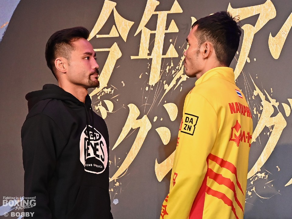 ナワポーンは、今年8月に行われたWBC世界バンタム級挑戦者決定戦以来の再起戦となる。300gアンダーの53.2kgで計量を終えると、「すごくエキサイトしている。このような機会をもらえてうれしい」と静かに闘志を燃やした。
