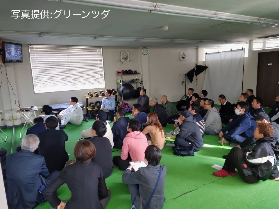実技研修の後には、関西のジムの会長やトレーナーたちと映像を見ながら、採点についてのディスカッションの時間も設けられた。