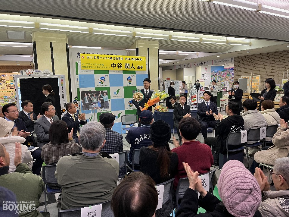 2月24日に行われた世界タイトルマッチで、WBC(世界ボクシング評議会)バンタム級新チャンピオンに輝いた中谷潤人(26=M・T)が8日、相模原市役所を訪れ、本村賢太郎市長に世界3階級制覇を達成したことを報告した。