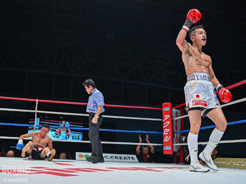 初回、独特のタイミングで左フックを振ってくるビバスに対し、矢吹は左ガードを上げて冷静に対応。2回になると、ジャブから右カウンターを好打。さらに左ボディを突き刺した。3回、矢吹は右ストレートでぐらつかせると、連打から左フックでダウンを演出。4回、ビバスの右を浴びた矢吹だが、連打から右ストレートで2度目のダウンを奪い、フィニッシュした。