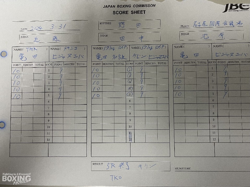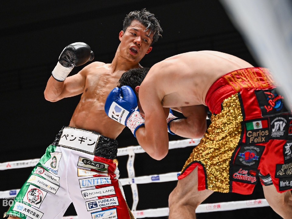 試合が始まると、左ボディとジャブでジリジリとコーナーからコーナーへとビジャヌエバを追い込んで、右ストレートで顔面を弾いた和毅。前に進むテンポを変えながら、プレスを常にかけ続けた。5回終了後のインターバルが終わると、ビジャヌエバ陣営から棄権の申し出があり、TKOにより試合終了。