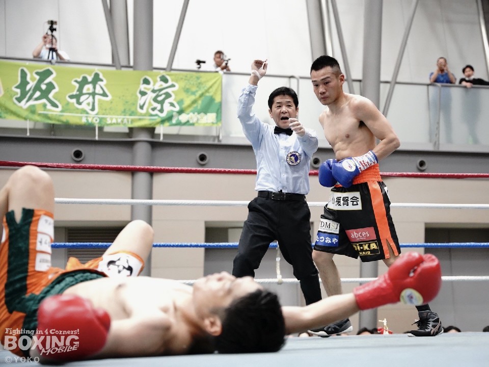日本フライ級12位の坂井涼(21=畑中)は、右ストレートで勝負を決めると、リング上での勝利者インタビューでは、「いつかは追いつけるように、超えられるように頑張ります」と、ジムの先輩で、世界4階級制覇チャンピオンの田中恒成(28=畑中)らの背中を追いかけて、さらに上を目指すことを誓った。