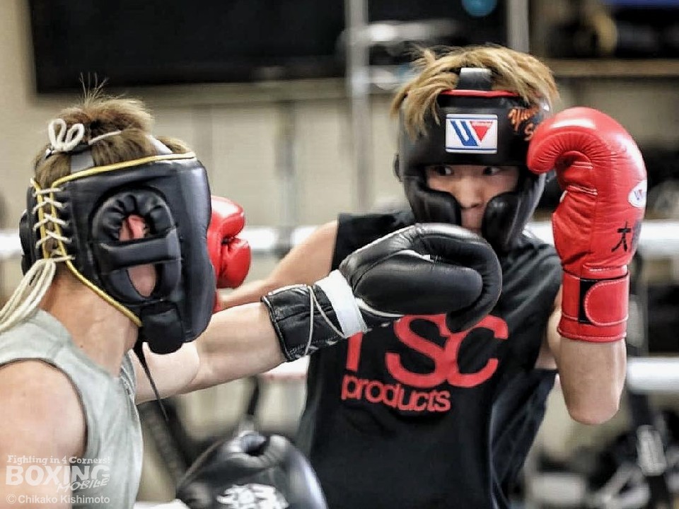 大橋ジムには、日本2位の森且貴(24)、日本8位の石井武志(24)、2023年東日本新人王の北野武郎(19)といったミニマム級の実力者が揃っており、切磋琢磨しながら腕を磨いている。この日のスパーリングでは、コンビを組む北野良トレーナーの檄が飛ぶ中、激しい打ち合いを見せていた。