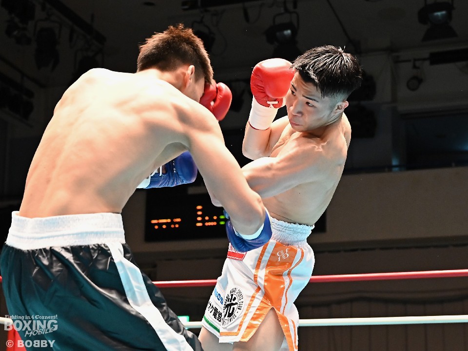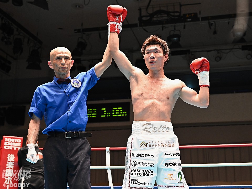 セミファイナルに登場した橋麗斗は、前日計量をオーバーした中国出身のヤン・ユーメンと対決。鋭いワンツーの連打でロープに追い詰める橋だったが、ユーメンも右をコンパクトに返して、踏ん張った。勝負がついたのは3回、橋が左ストレートボディで効かせると、最後は左右のボディを叩き込んでダウンを奪うと、膝をついた ユーメンは立ち上がれず。橋がプロデビュー戦を、しっかりとKO勝利で飾った。