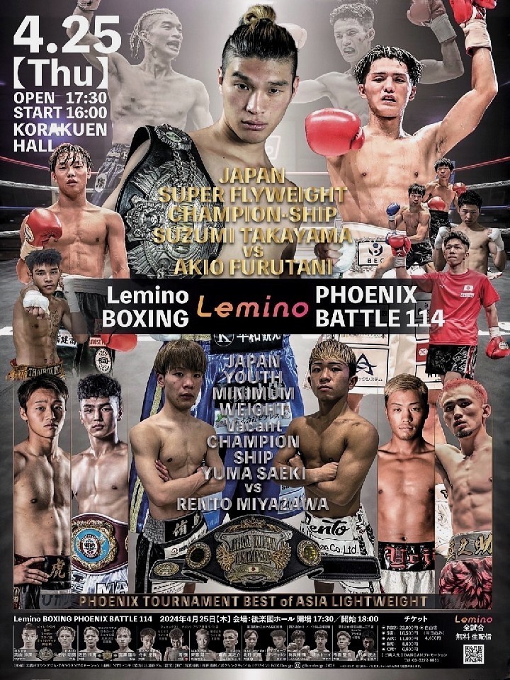 試合は、明日(25日)、後楽園ホールで開催される「Lemino BOXING フェニックスバトル114」のメインイベントで行われる。