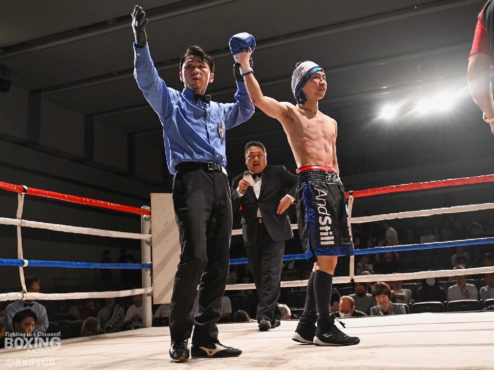 激戦を制した秋間は、「相手がジャブに反応してくれたので、リズムに乗ることができた。初回にダウンを奪ったことで、気持ちが楽になった。右を警戒してくれた分、左がよく当たった。以前、敵地で引き分けたが(2017年11月福岡)、今回は判定勝ち。(アウェー戦でも)良いイメージを持つことができた。価値のある勝利だと思う」と喜びに浸った。