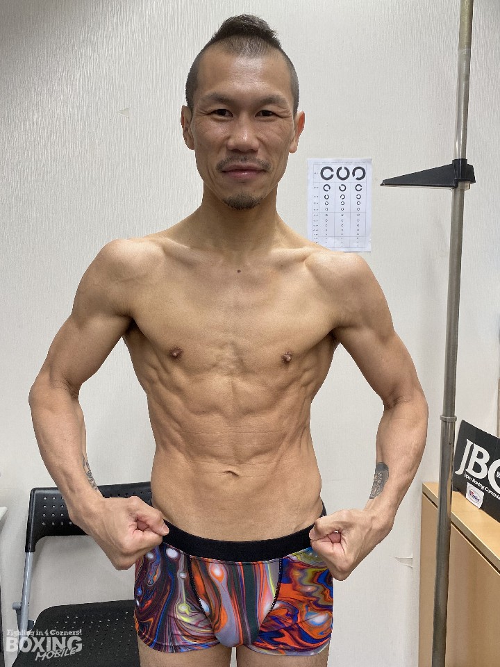 先に秤に乗った和氣は、スーパーバンタム級リミットを200g下回る55.1kgでパスした。明日で41戦目を迎える和氣だが、これまで一度も計量オーバーはおろか、再計量もしたことがなく、今回も仕上がりの良さを感じさせた。