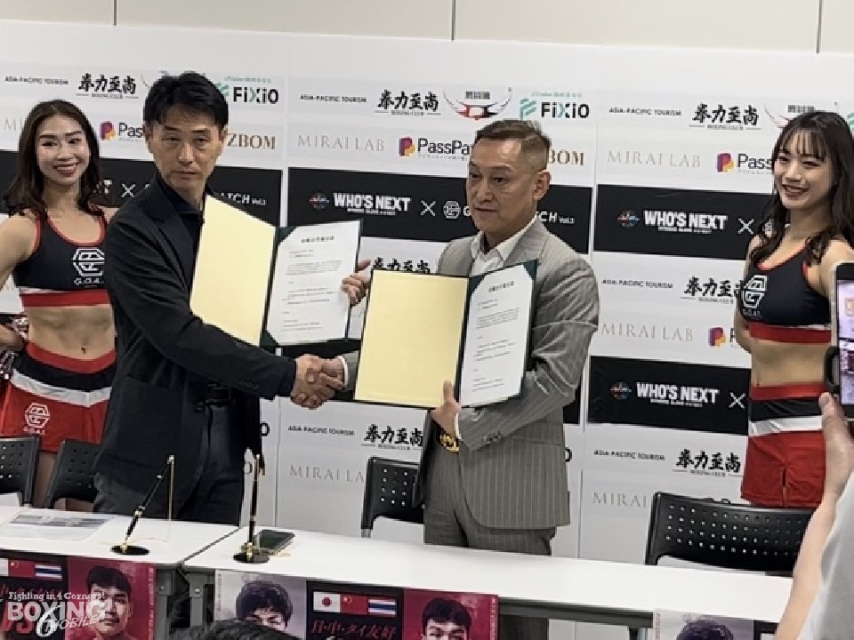 日中プロボクシング協力覚書調印式が行われ、大連イーグルトーテムボクシングクラブ の崔 迪 (サイ・デイ)オーナーと新日本木村ジムの木村 英之会長が、日中のボクサーを共同で育成し、技術力と国際競争力を高めまることで、合意した。今後は、ボクシングイベント及び文化交流を通じて、日中の若者間の理解と協力を促進し、友好関係を強化するとともに、ボクシング産業のエコシステムを共同で構築・改善し、スポーツの持続的な発展を推進することを目指す。