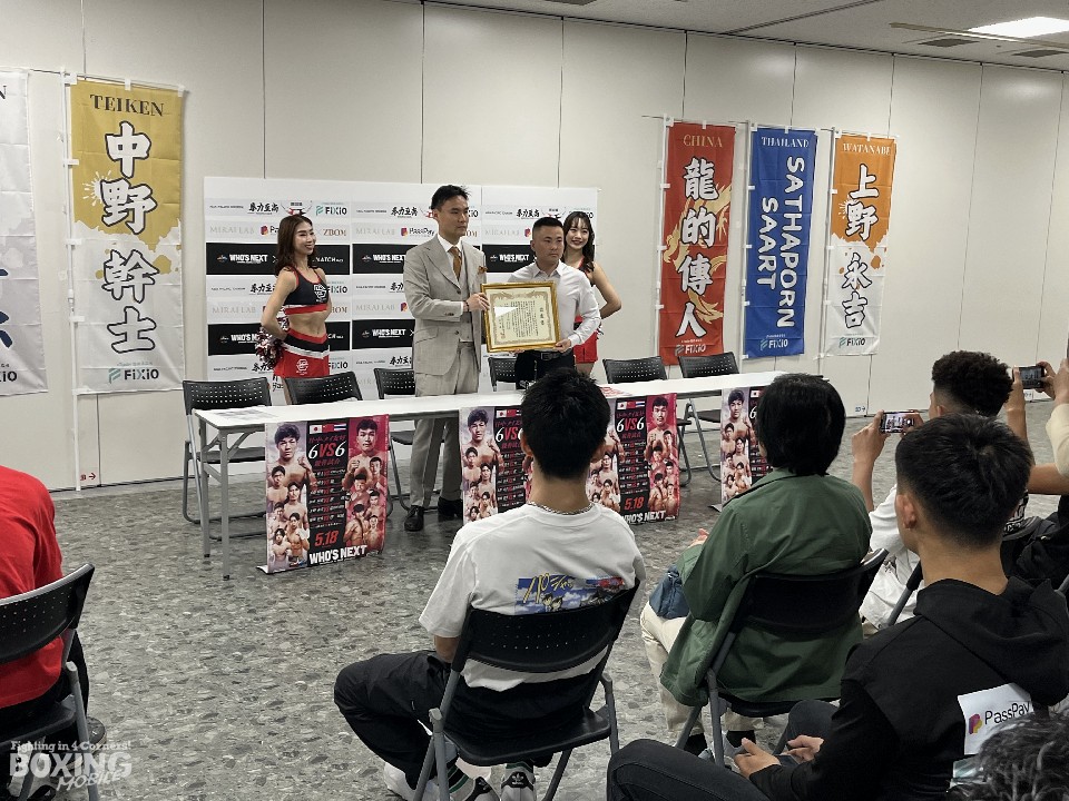 G.O.A.T.MATCH実行委員会と重慶市渝中区ボクシング協会との認定式も行われ、新日本木村ジムの田 川(デン・カワ)氏と重慶市青年連合会委員で、重慶市渝中区ボクシング協会の副会長を務める范 金栄(ハン・キンヨウ)氏が、日中青少年ボクシング交流プロジェクトにおける協力を発表した。今後は、重慶市渝中区ボクシング協会が、指定された地域で青少年やアマチュア愛好者の募集を行い、官民学連携による日中友好ボクシング交流試合への参加を促進する。その上で、文化、観光、スポーツを含む分野で日中の協力を強化し、「試合と共に旅をする」プロジェクトを推進する。