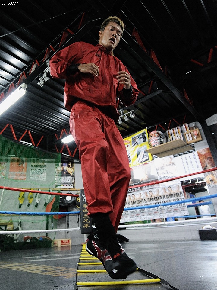 予定10分前に現れた"最終兵器"は終始リラックス。冒頭の会見では、口も滑らかで上機嫌。対戦相手のエドゥアルド・ガルシア(メキシコ)は、「メキシコで観た事がある」とし「打たれ強い選手だが、俺のスピードで圧倒する」と吠え、「後3戦。来年の誕生日(7月12日)までに世界をとる!」とカウントダウン宣言も飛び出した。