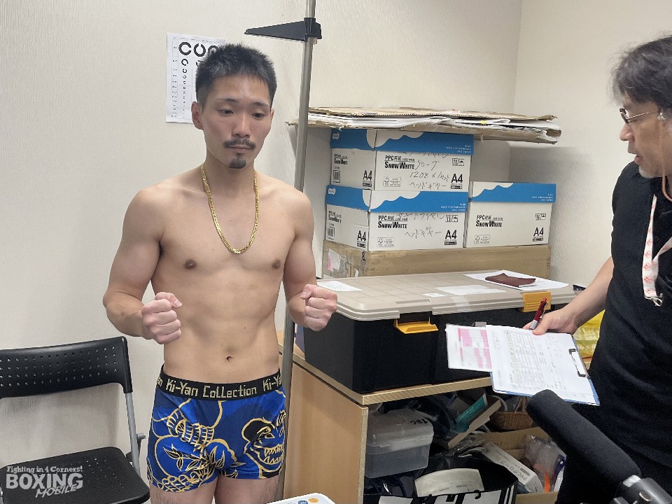 48.2kg契約8回戦の計量を48.1kgでクリアした内田は、「お互いよく続けていたなというのもありますし、僕にとっては、リベンジということで、しかもメインイベントで、運命のステージが用意されていると思っている。明日は勝たせてもらいます」と、気持ちを込めた。