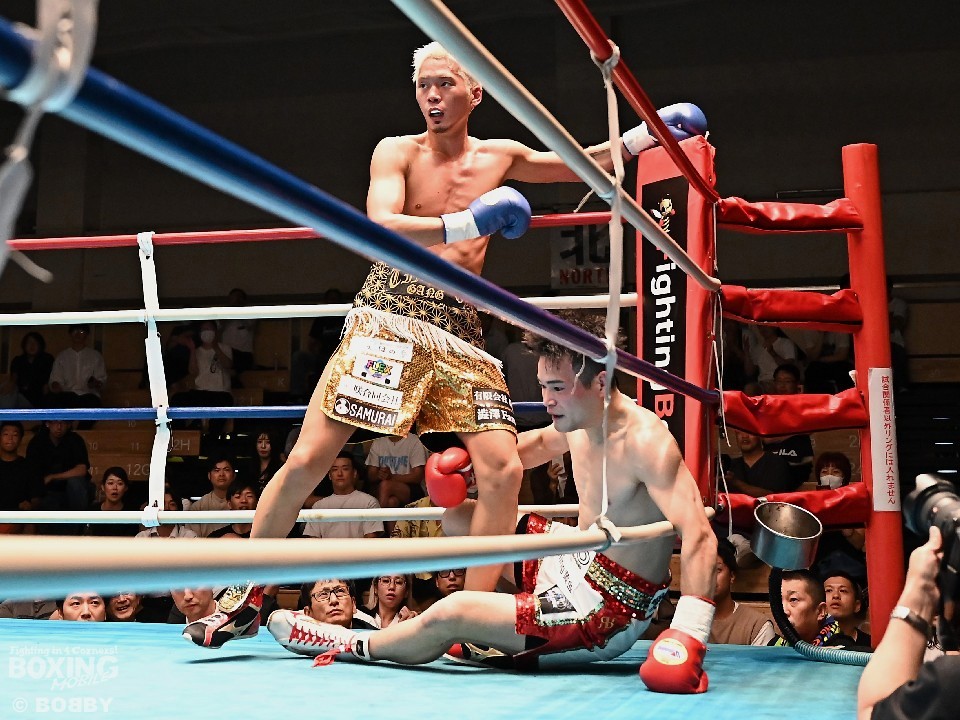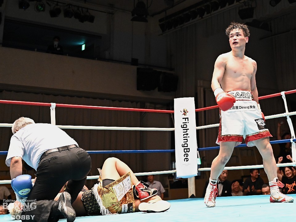 初回、小林がジャブを飛ばして距離をキープ。2回、川村はプレスをかけて左ボディで反撃するが、小林は右ストレートから左フックをフォローして、ダウンを奪った。劣勢の川村は4回、ブロッキングしながら前に出ると、左ボディを突き刺しダウンを演出。最後は、左フックで小林を倒した。