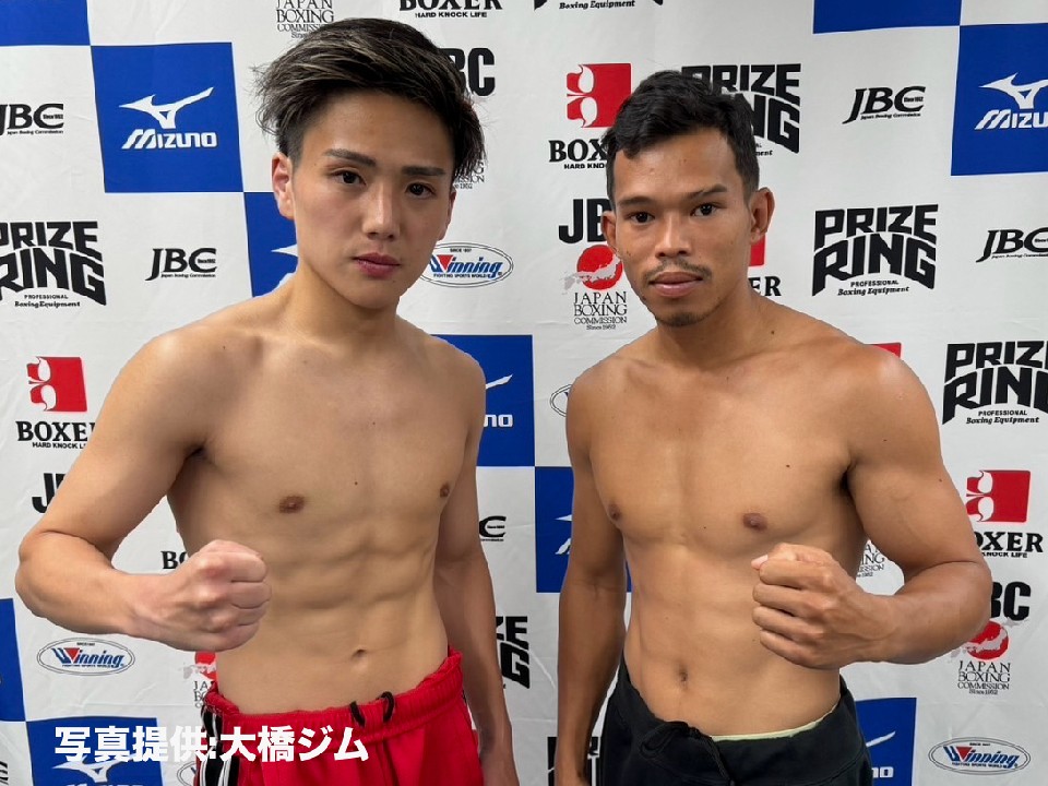 セミファイナルに登場する石井は、56.0kg契約8回戦で元世界ランカーのエドワード・ヘノ(31=比)と対戦する。石井は契約体重ちょうどの56.0kg、ヘノは1.2kgアンダーの54.8kgでパスした。
