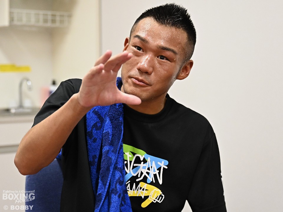 試合に関しては、「ジャブが得意なので、コツコツ当てて痛めつけて、連打でラッシュしようと思っていた。相手はダウン経験が少ないので、ストップを狙っていた」と戦略を明かし、勝負を決めた右ストレートは「遠いところからも感触はあった」と手応えを掴んでいた。