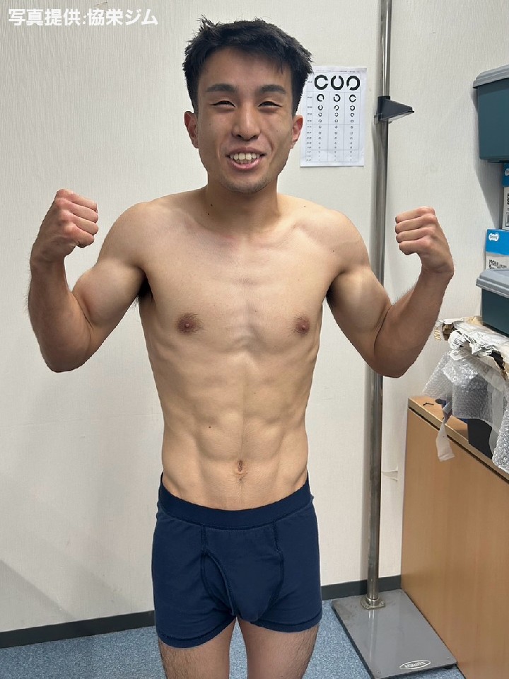 100gアンダーの72.4kgで秤を降りた盛合は、「全日本新人王を獲るためにも、ここは圧倒して勝ち進む」とコメントを寄せた。189cmの長身から繰り出す右ストレートを武器に4連勝中だ。