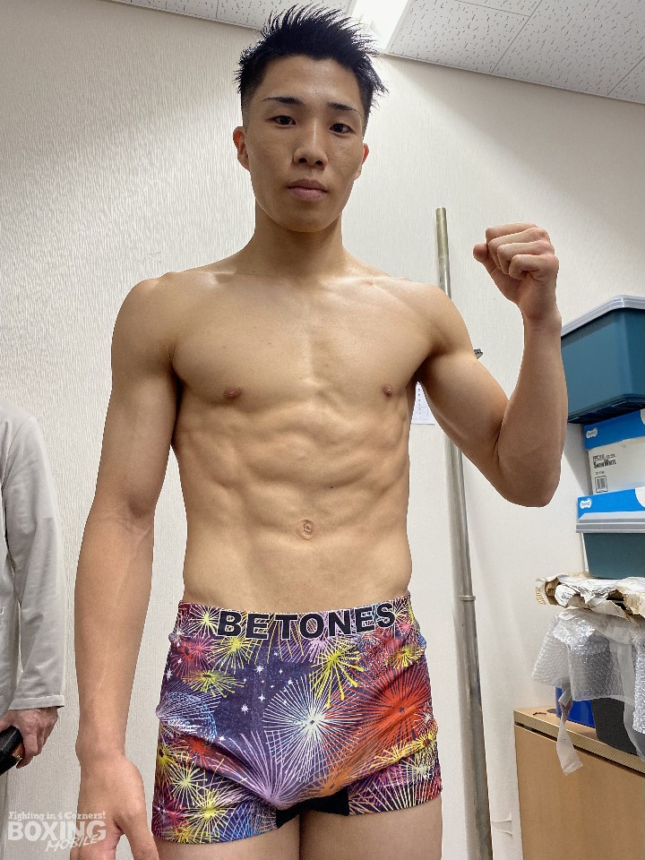 2試合連続初回KO勝ちしている堀池は、スーパーライト級リミットを200g下回る63.3kgでクリアした。今回は11kgの減量に臨んだが、「想定していたより、上手くいった」と、仕上がりの良さを強調した。