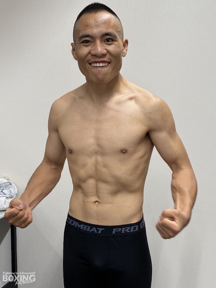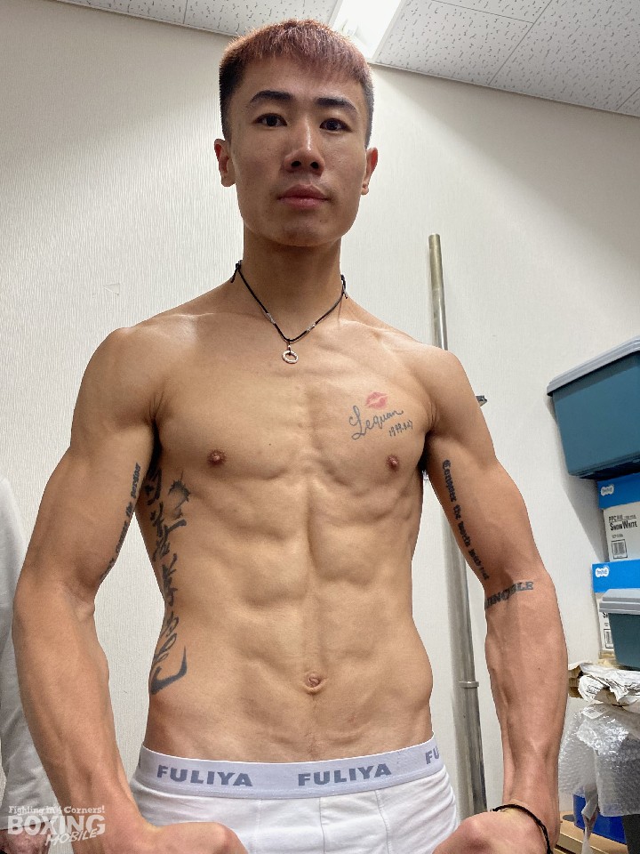 9戦8勝(5KO)1敗のワンは、400gアンダーの63.1kgで計量を終えた。記者会見に臨んだワンは、「明日は、素晴らしい結果を見せられると思う。楽しみにしていてほしい」と勝利に自信を示した。