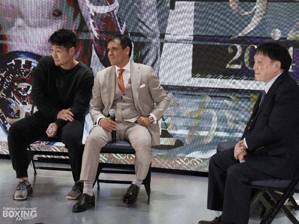 試合前、「松本清司トレーナーから、右のパーリングをするときに、右のガードが空く癖があることを言われていたが、かわせばいいと思ってたが、そこを狙われて(パンチを)もらって、(目の前が)砂嵐のようになった」と大橋会長が振り返ると、そのことに関して、ロペス氏は、「映像を見て知っていたので、狙っていた」と明かした。