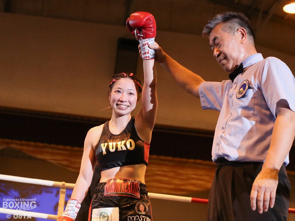 ダブルメインイベントとして行われたスーパーライト級6回戦では、寺田龍覇(27=白銀)が日高健次(32=W延岡)と対戦。女子ミニマム級8回戦では、6年10ヶ月ぶりに福岡のリングに上がった元女子2階級制覇チャンピオンの黒木優子(真正=33)が、ヴィスター・シリッデット(タイ)を迎えての凱旋試合。黒木の登場に会場が沸き上がった。