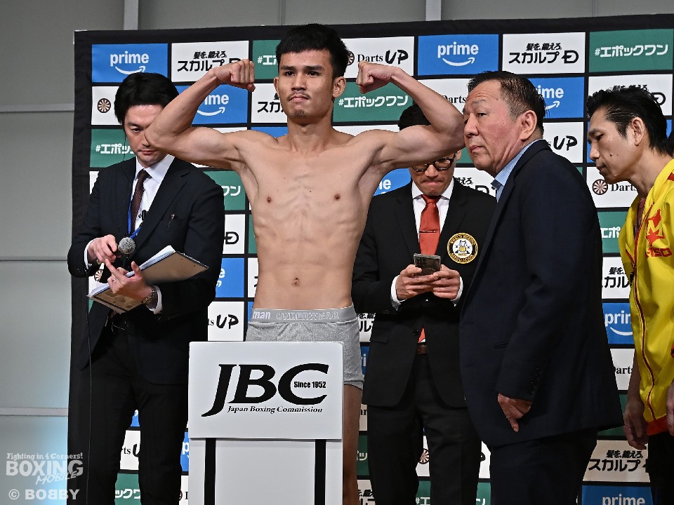 WBA(世界ボクシング協会)世界フライ級タイトルマッチの前日計量が12日、東京ドームホテルで行われ、チャンピオンのユーリ阿久井政悟(29=倉敷守安)と挑戦者のタナンチャイ・チャルンパック(24=タイ)が秤に上がった。