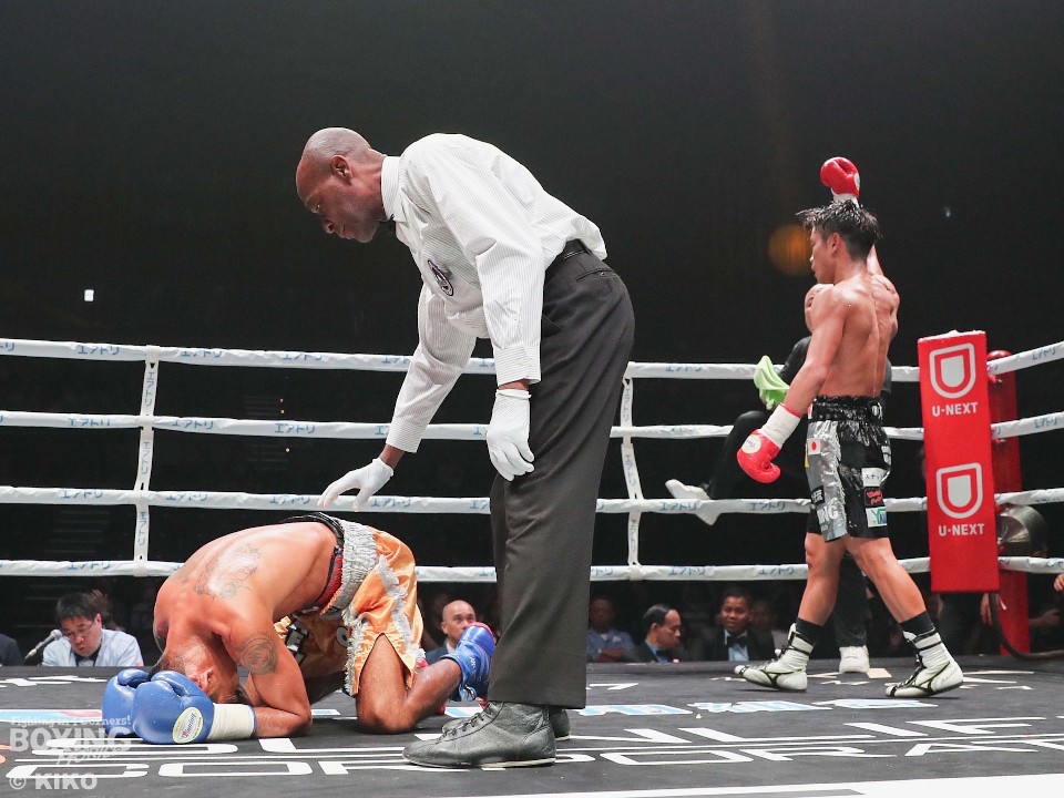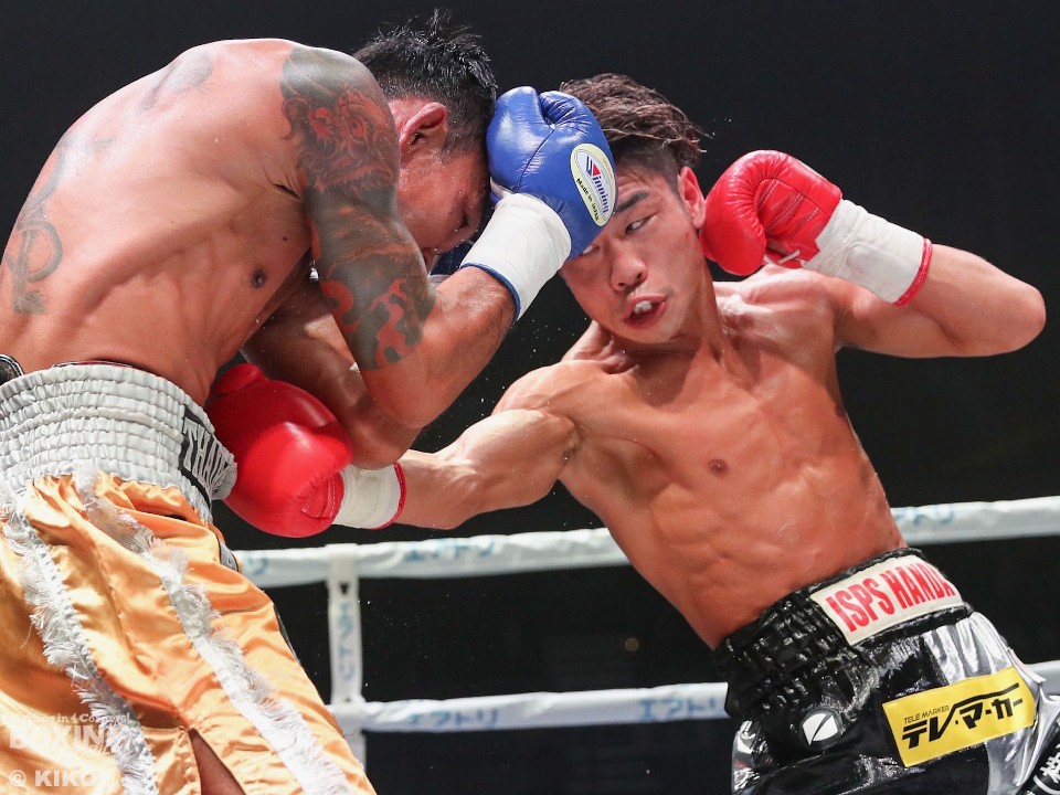 頭の位置を微妙に変えながら、タイミングを図って右を返して、ダメージを最小限に留めるパイに対して、ボディ、アッパー、ストレートと左を打ち分けて、距離を詰めた谷口がテンポよく攻めた。被弾はガードとステップで回避した谷口。試合を決めたのは、6回の谷口の左ボディ。パイが出てきたところにカウンターで左ボディが入ると、うずくまったパイは立ち上がれず。10カウントが数え上げられた。