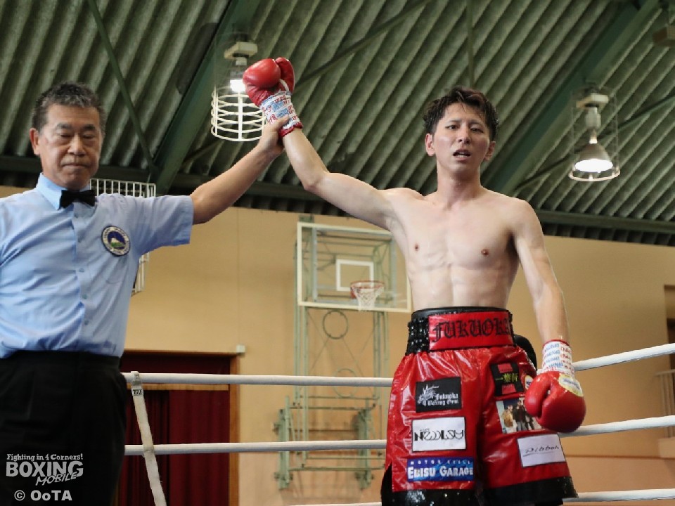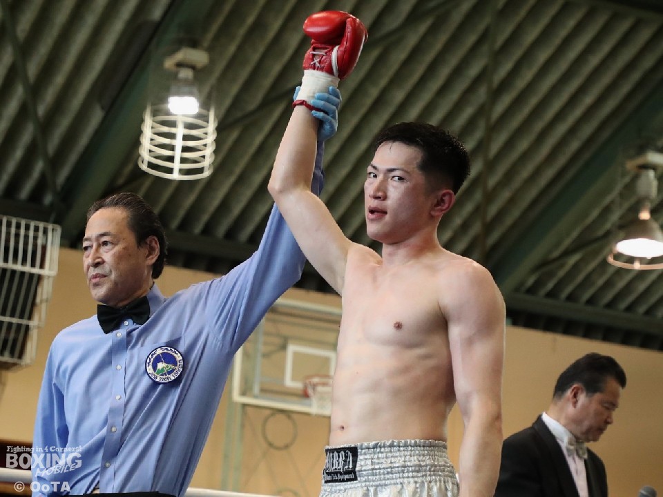 第8試合ライト級4回戦では、堤啓至(20=FUKUOKA)が田中友介(20=西遠)と対戦。堤が序盤から徹底した距離の管理で、田中の攻め手をかわした。最終回も、堤は猛追を見せる田中をしのいでゴールテープを切った。右ジャブと左ストレートを効果的にポイントへ結びつけた堤が判定勝利で、全日本新人王への切符を勝ち取った。