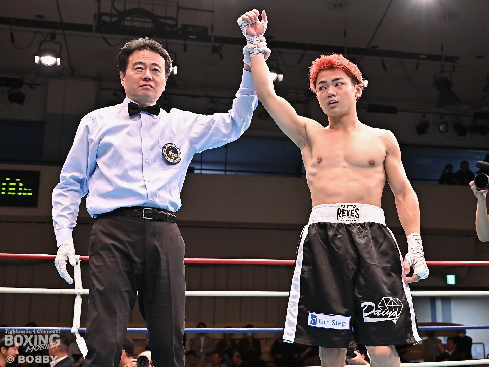 吉良は脱力を意識しながらプレスをかけると、左ボディを痛打。ベネズエラからやってきたピノは、一瞬の間を置いてダウン。そのまま10カウントを聞いた。吉良がデビュー戦より早いタイムでKO勝ちした。