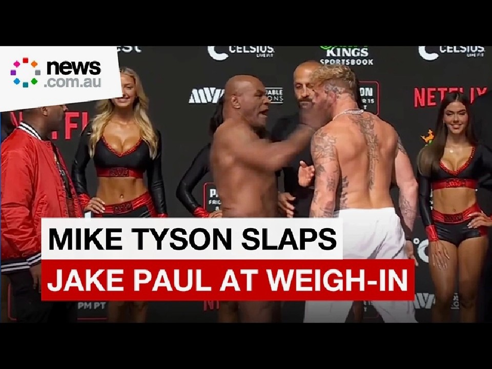 元ヘビー級3団体統一王者マイク・タイソン(58=米)とYoutuberボクサーのジェイク・ポール(27=米)が15日、公式戦の前日計量で一波乱。タイソンがポールにビンタを喰らわせたのだ。